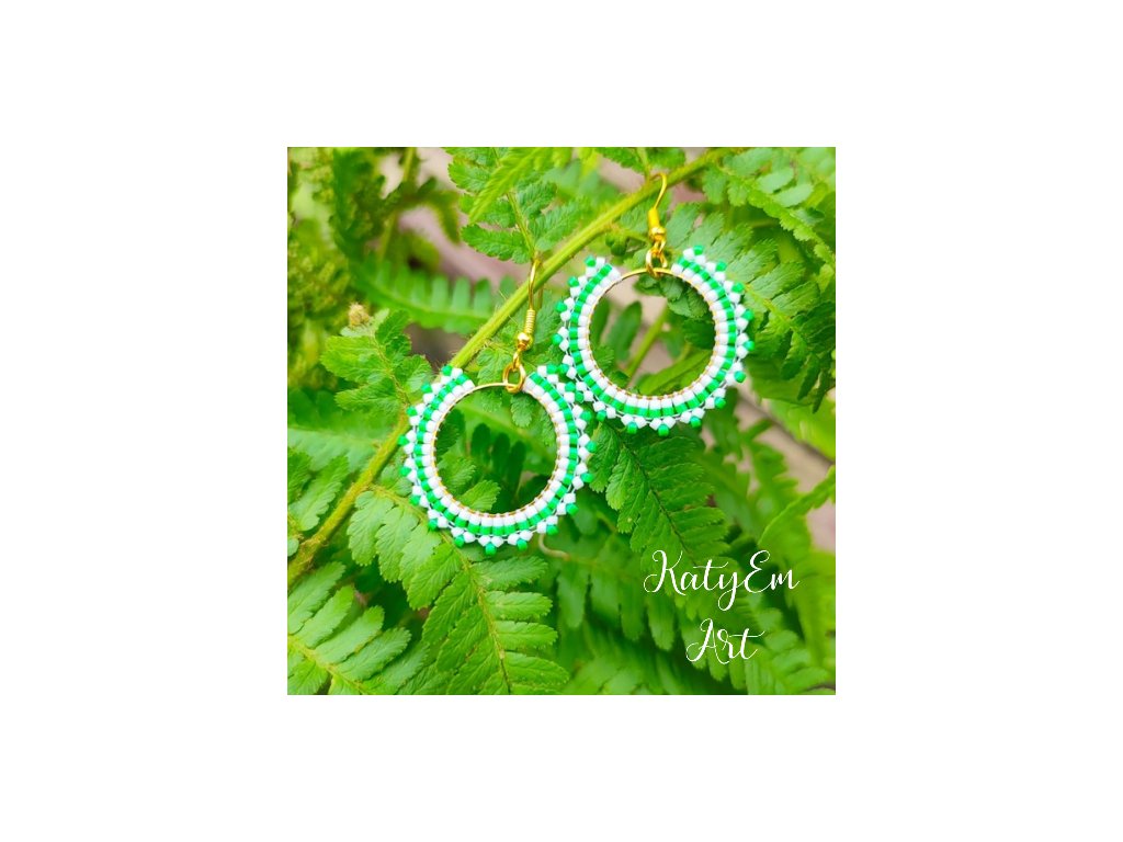 Krásné, lehké zeleno-bíle náušnice se zlatavými komponenty z kvalitních korálků.