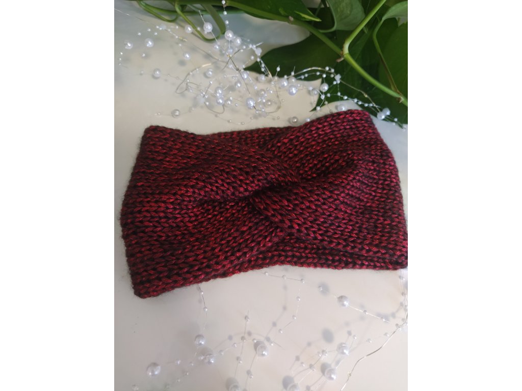 Pletená čelenka červená