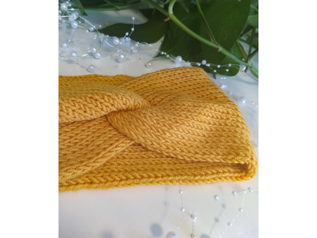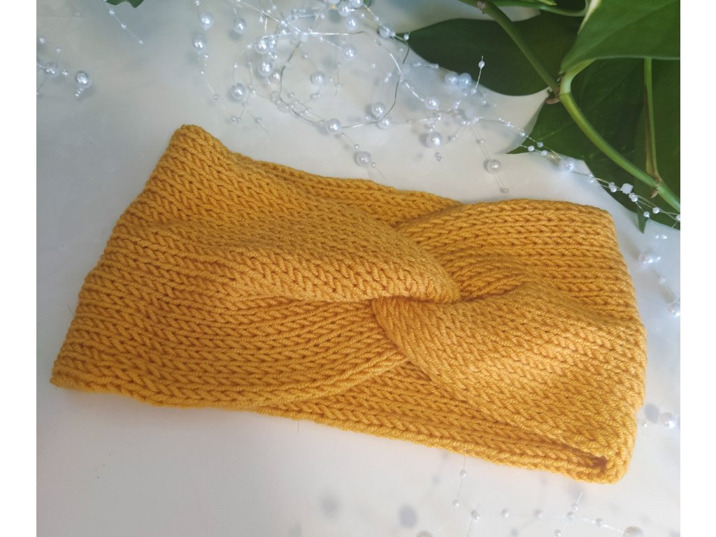 Dámská pletená čelenka s uzlem. Hřejivá, lehká a pružná.