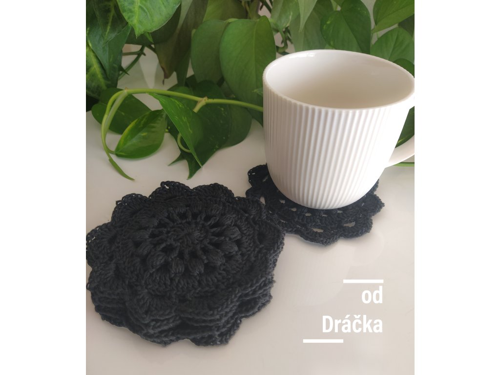 Sada šesti háčkovaných podšálků. Průměr 12cm.