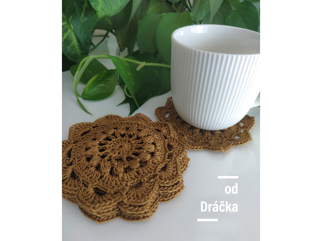 Sada podšálků hnědo-zlatá