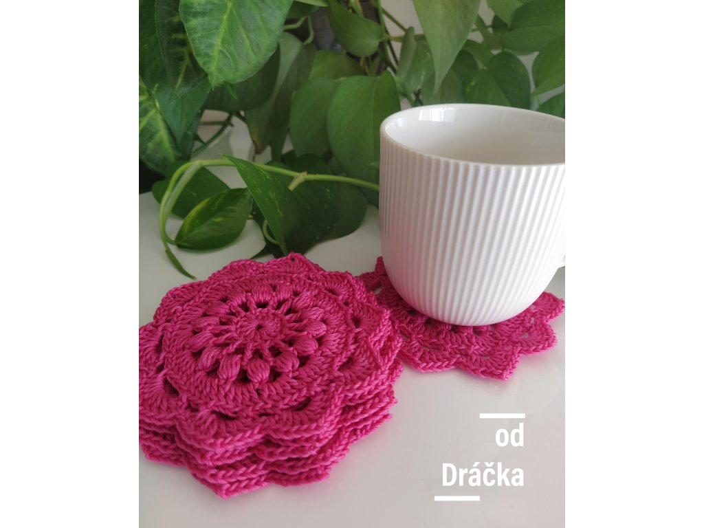 Sada šesti háčkovaných podšálků. Průměr 12cm.